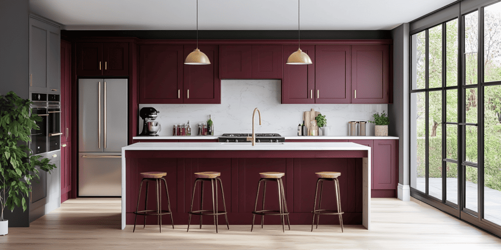 A lot of homeowners have been reaching out to us for burgundy kitchen ideas UK. And why not? This timeless reddish hue beautifully transforms the kitchen into a classier haven. If you love making bold and timeless choices for your kitchen, then we’ve got a good collection of trending burgundy kitchen themes. Explore these amazing kitchen colour ideas and learn the ways burgundy can turn your kitchen uniquely yours. Let’s dive in.