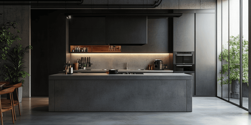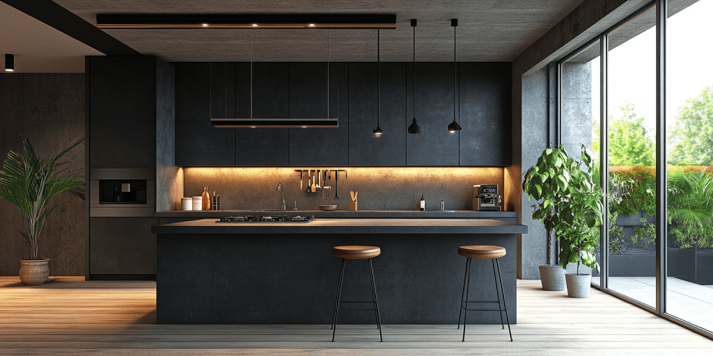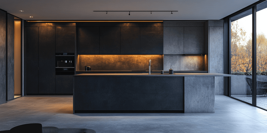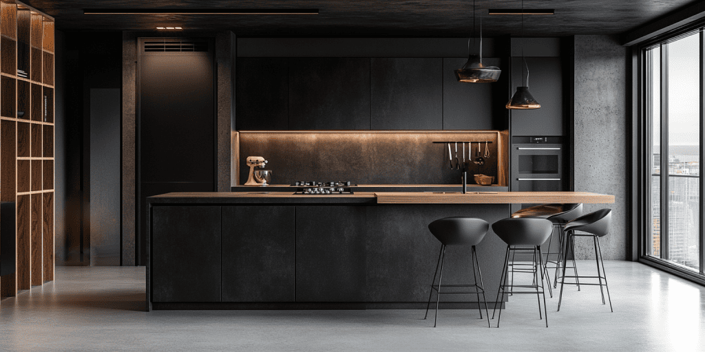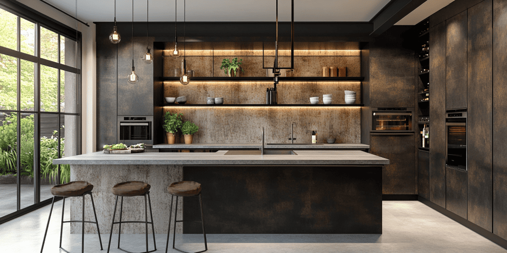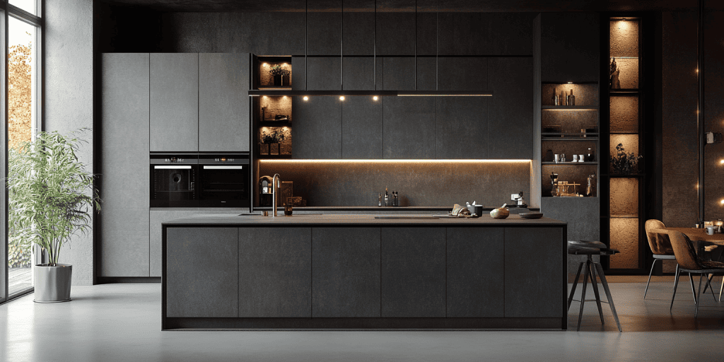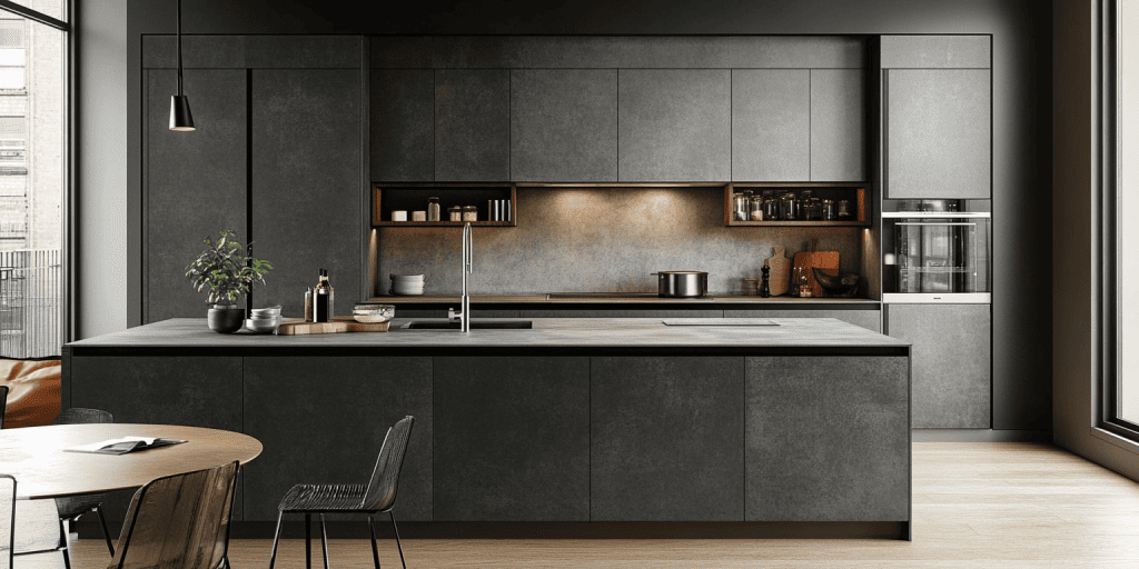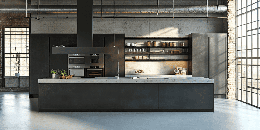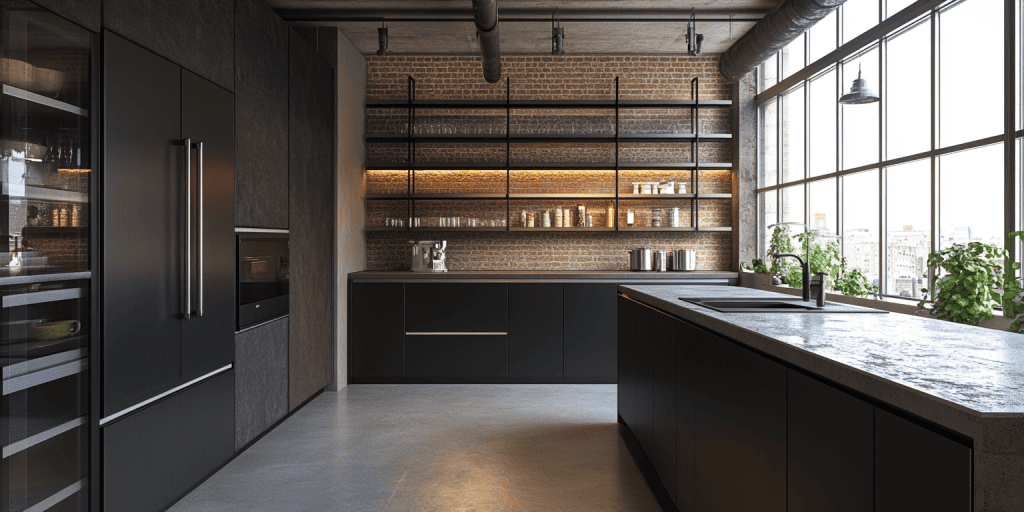 16. Dark Industrial Kitchen Ideas with Tall Units
