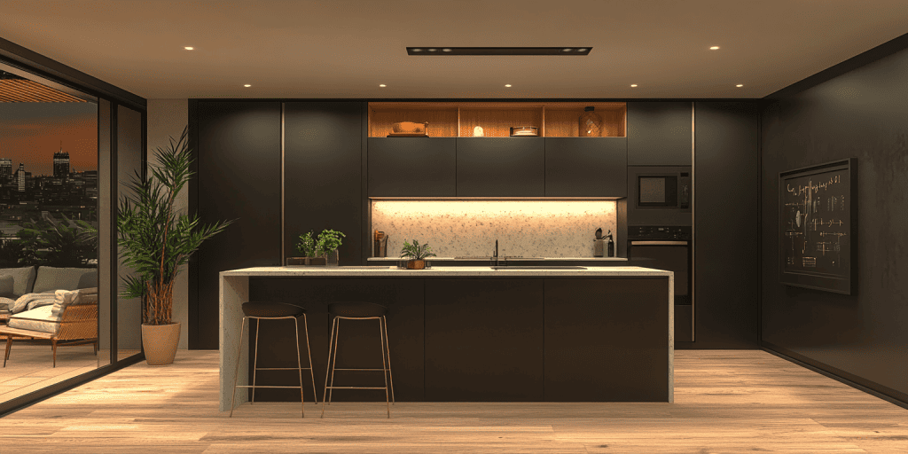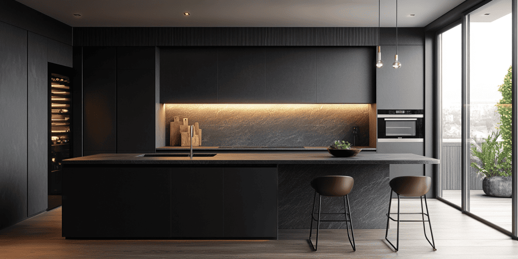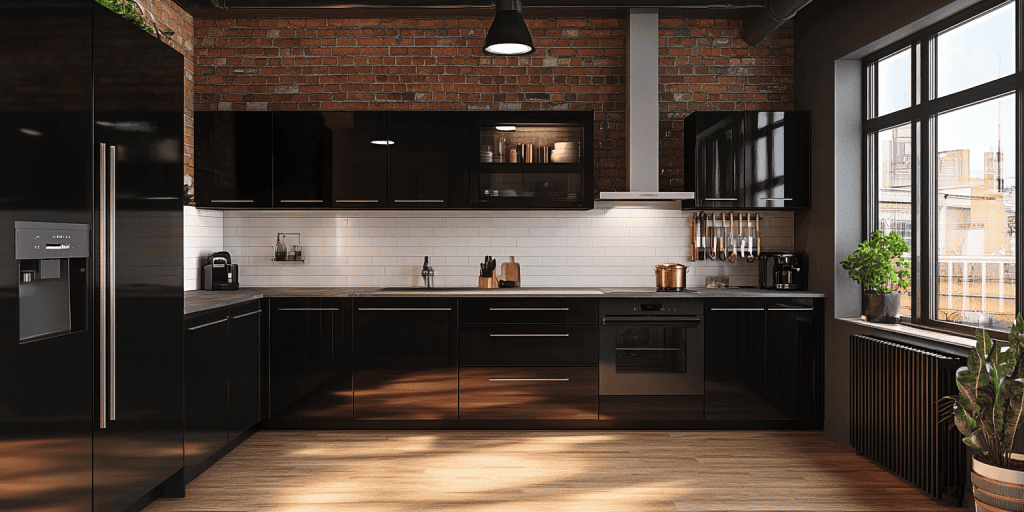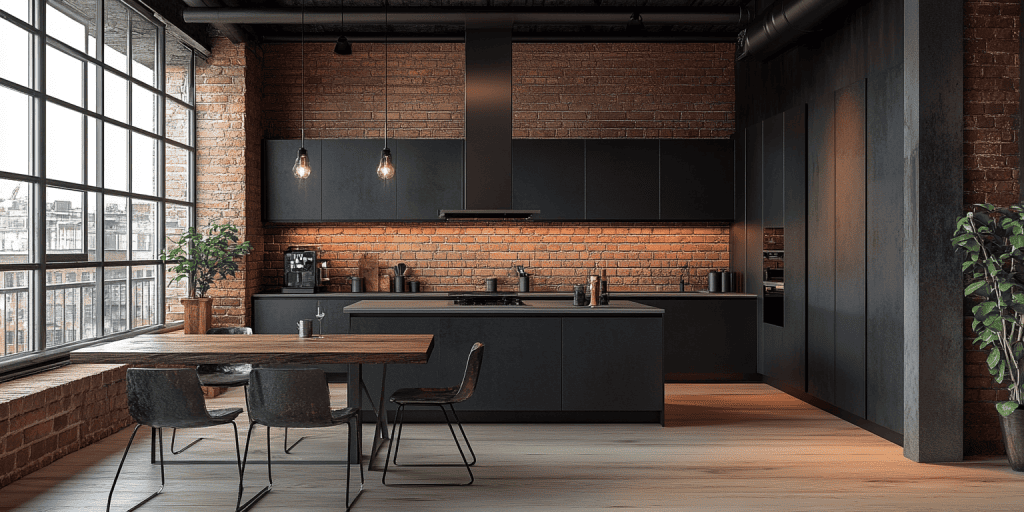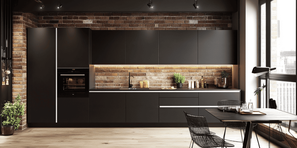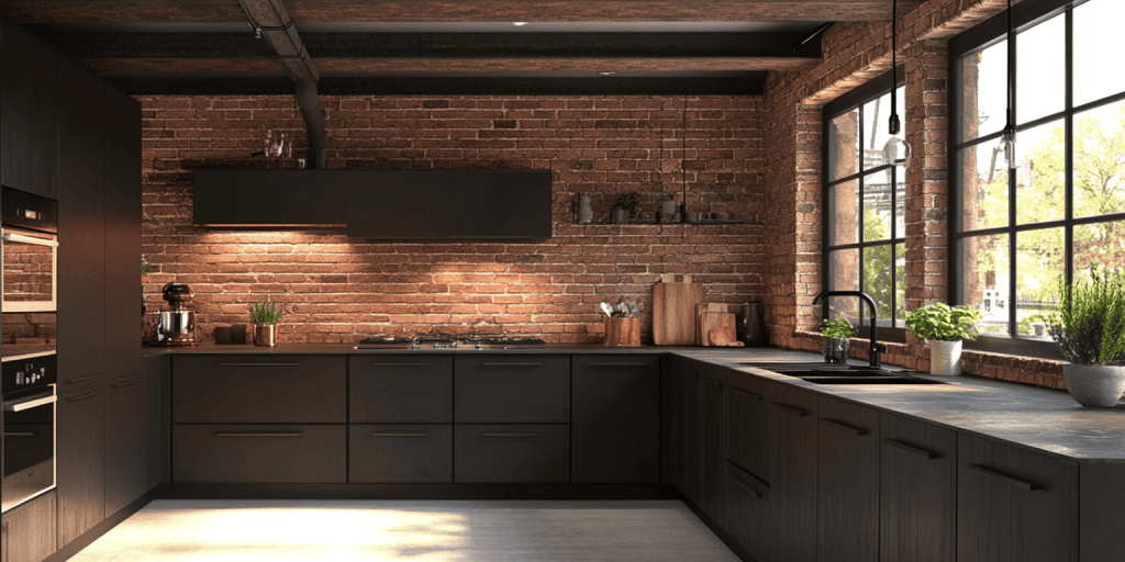 4. High-End Kitchen With Brick Walls and Matte Black Finish