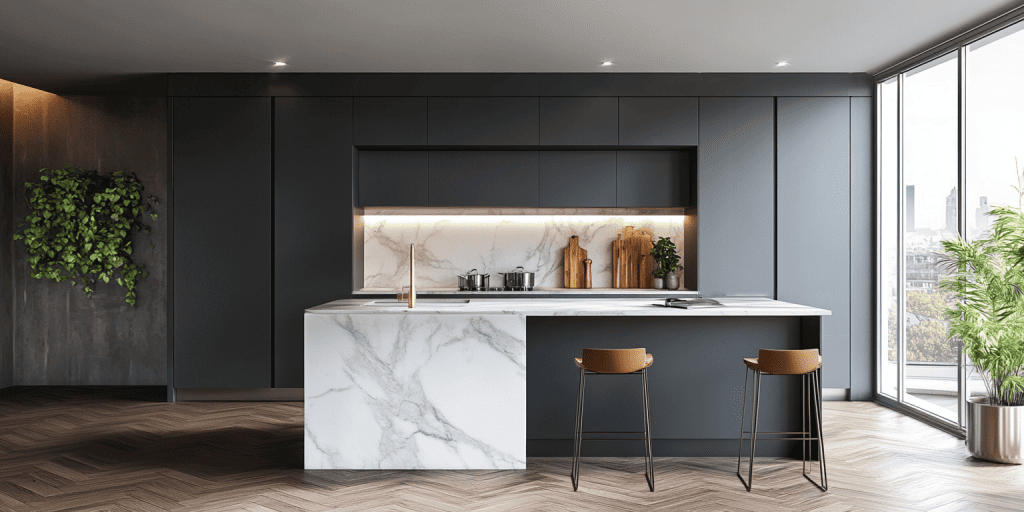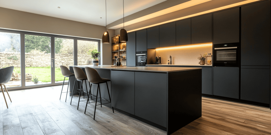 This industrial kitchen idea UK pairs brilliantly with matte grey cabinets with a sleek layout built for everyday efficiency. Durable finishes, ergonomic storage along with a clean flow make it perfect for both modern UK homes and commercial-style inspiration. Looking for a professional-grade design with timeless appeal? Don’t forget to save this