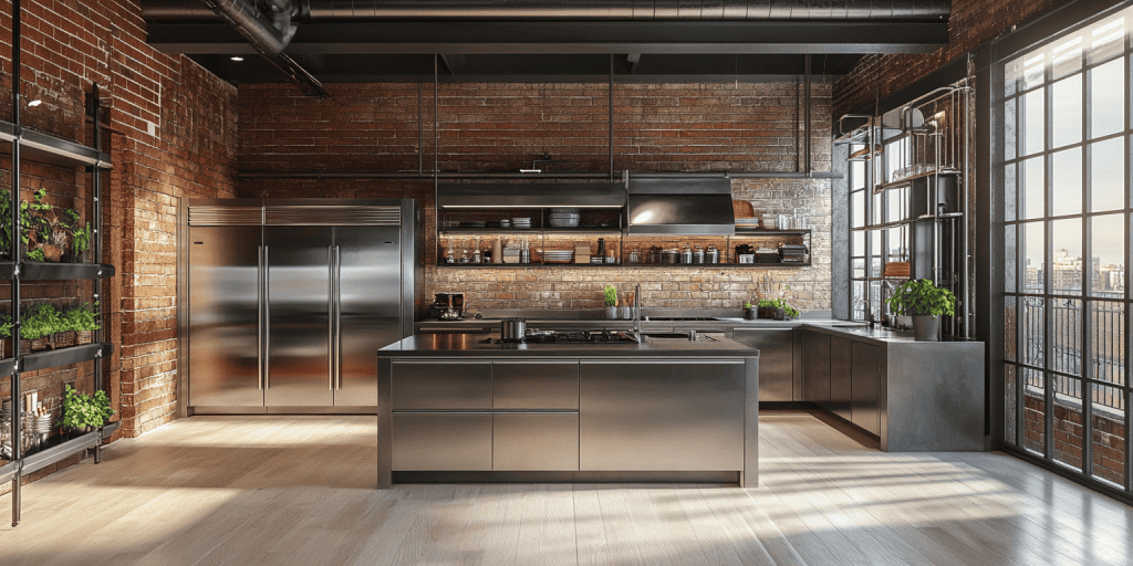10. Industrial Kitchen Look with Durable Finishes & Ergonomic Layout