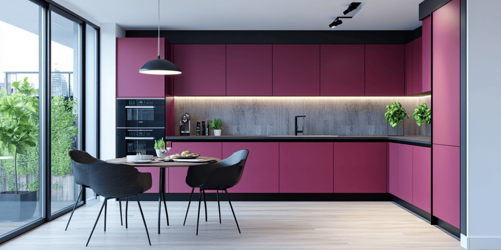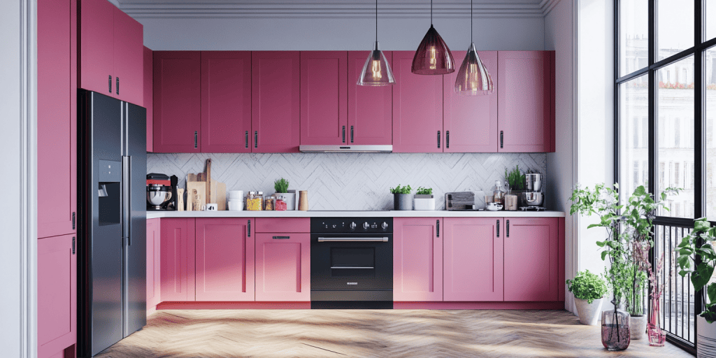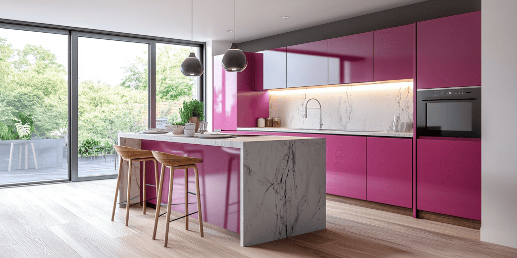 5. Magenta Pink Island Kitchen With a Modern Appeal