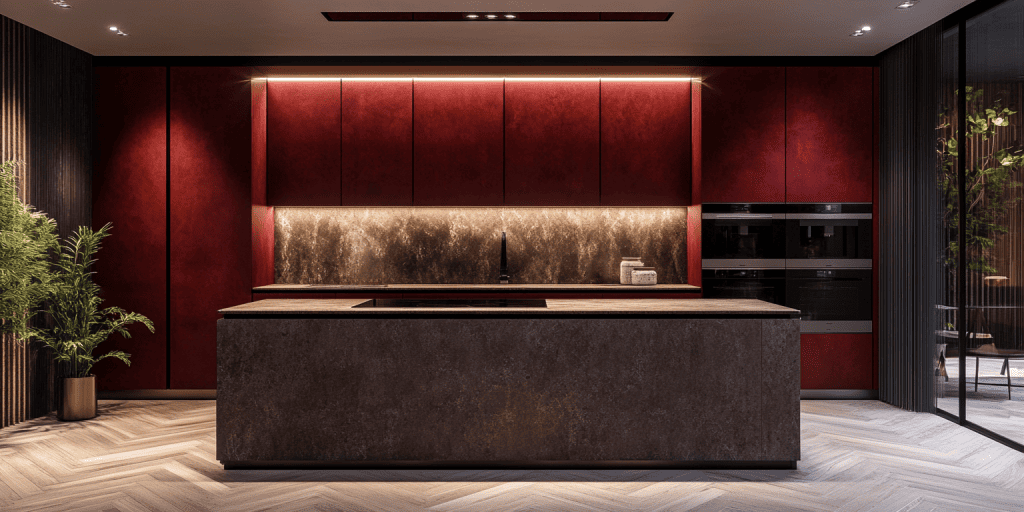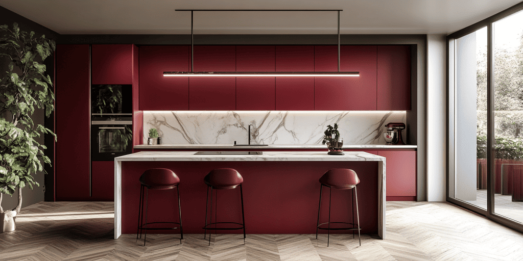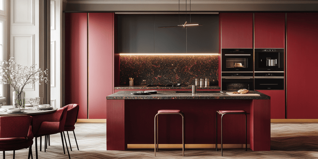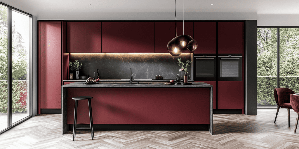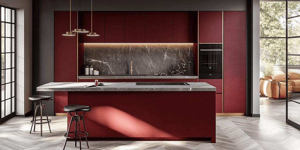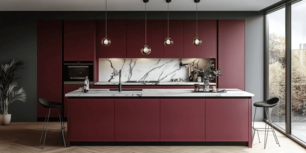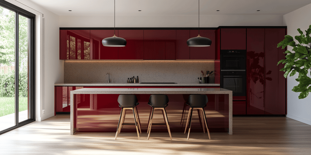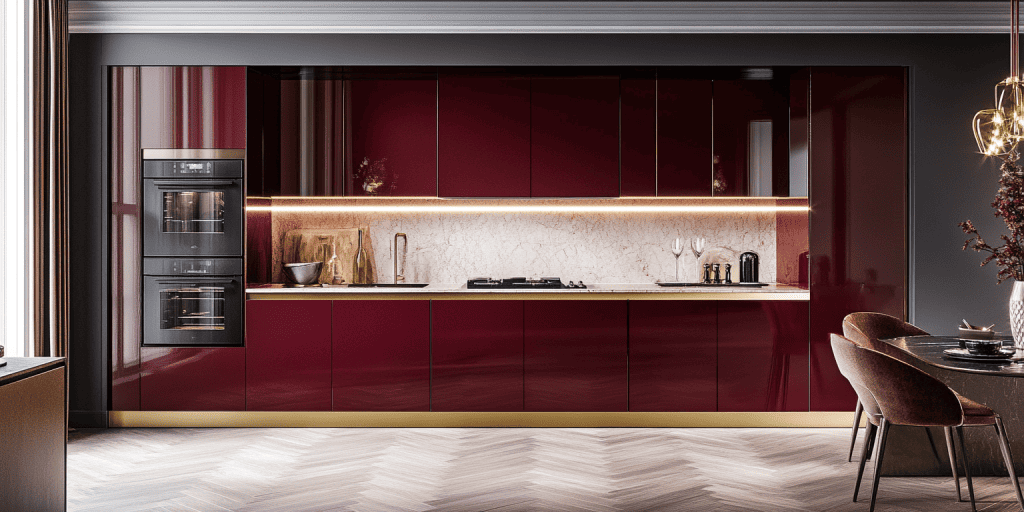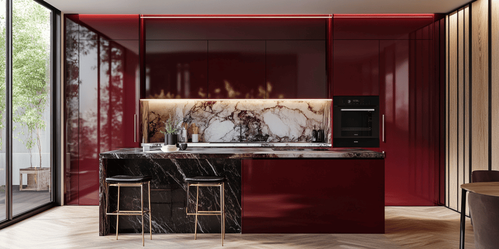 6. Dark Burgundy Gloss For Dramatic Kitchen Design Ideas