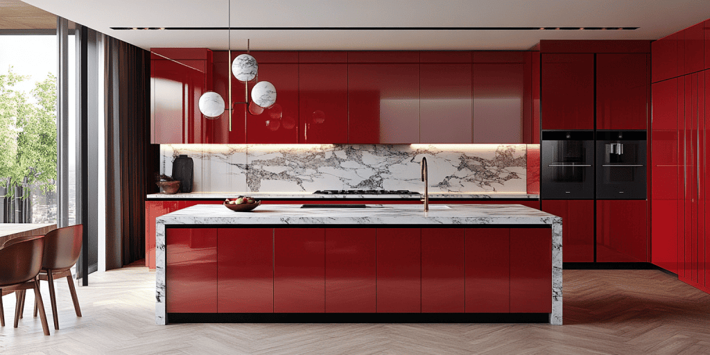 4. Matte Scarlet Slab Cabinets For Modern Style
